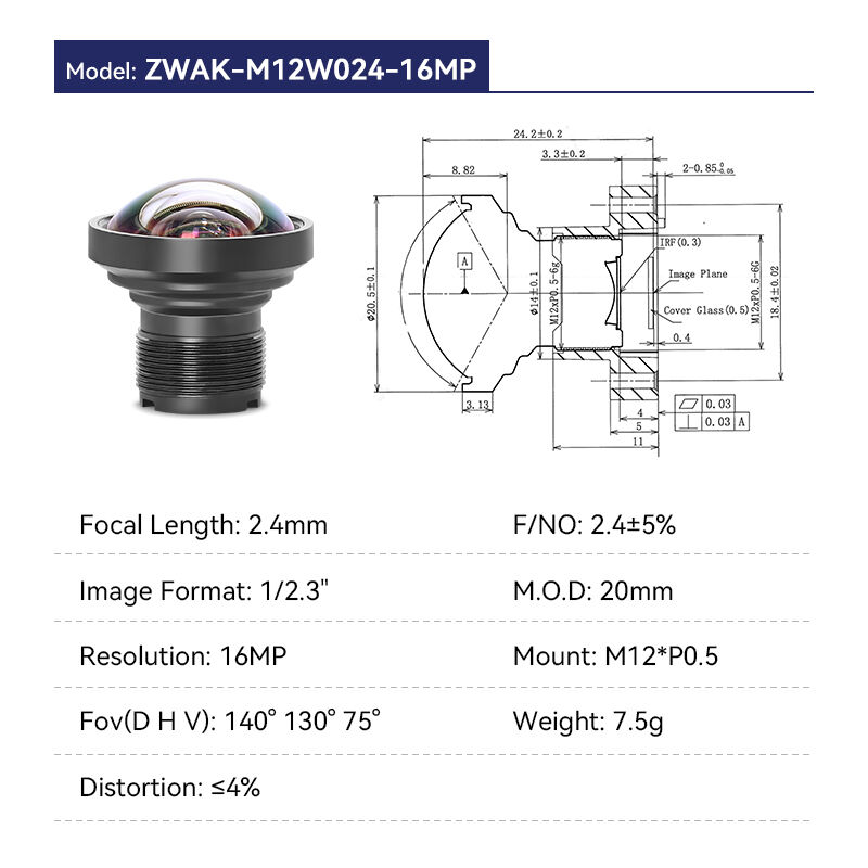 Lente M12 fixa de 1,1 mm F2,0 12 MP com campo de visão de 200° para formato de imagem 1/2,3"