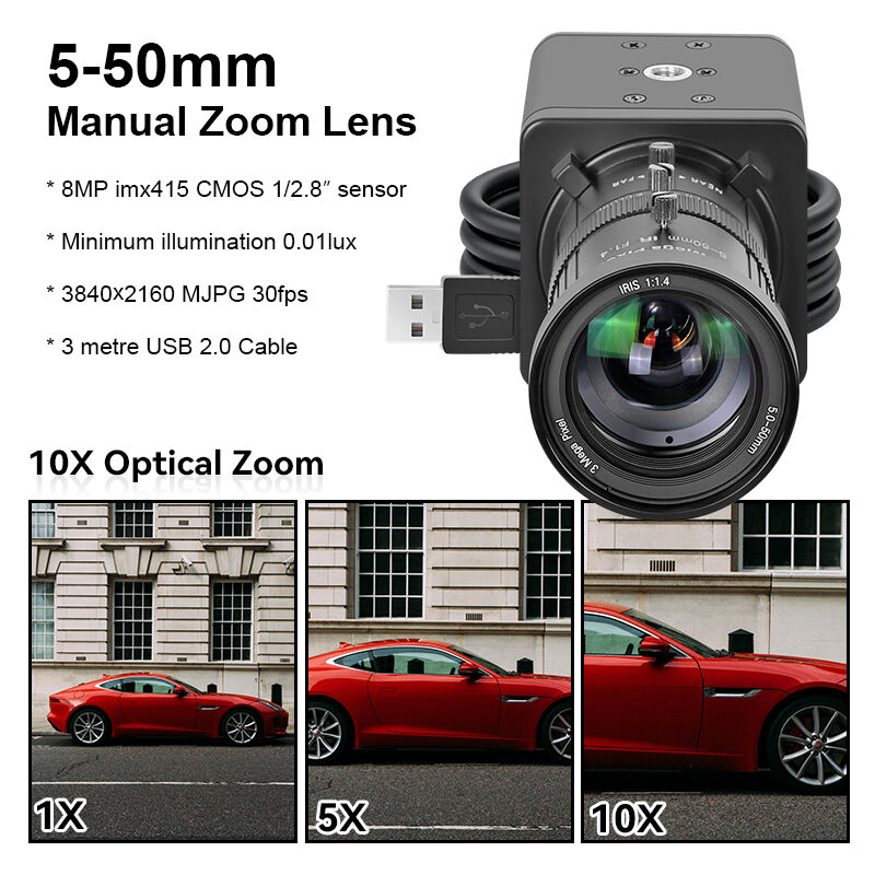 câmera USB imx334 8MP 4K UHD 3840x2160 cmos sensor 1/8" angular ampla câmera industrial