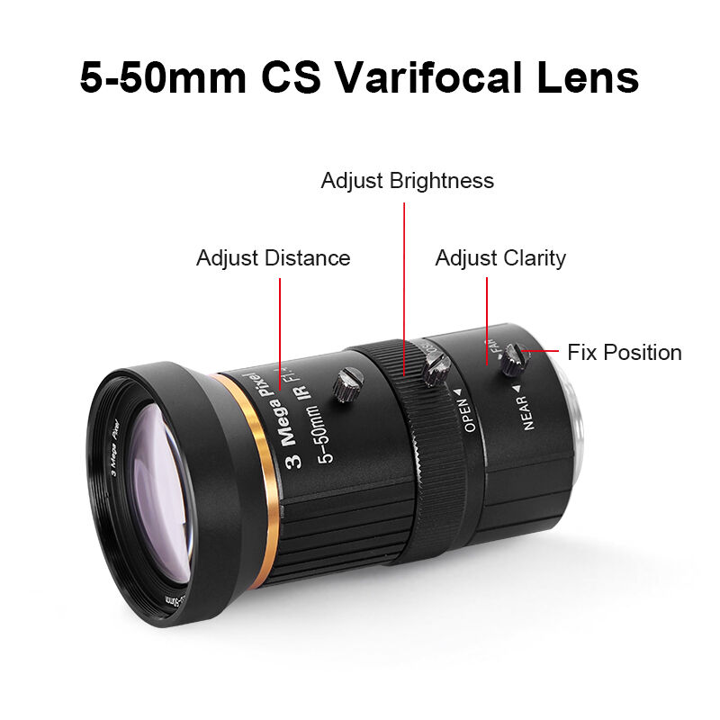 Lente M12 3 mm F2,8 de Foco Fixo 3MP Campo de Visão 80° Sem Distorção para Formato de Imagem 1/4"