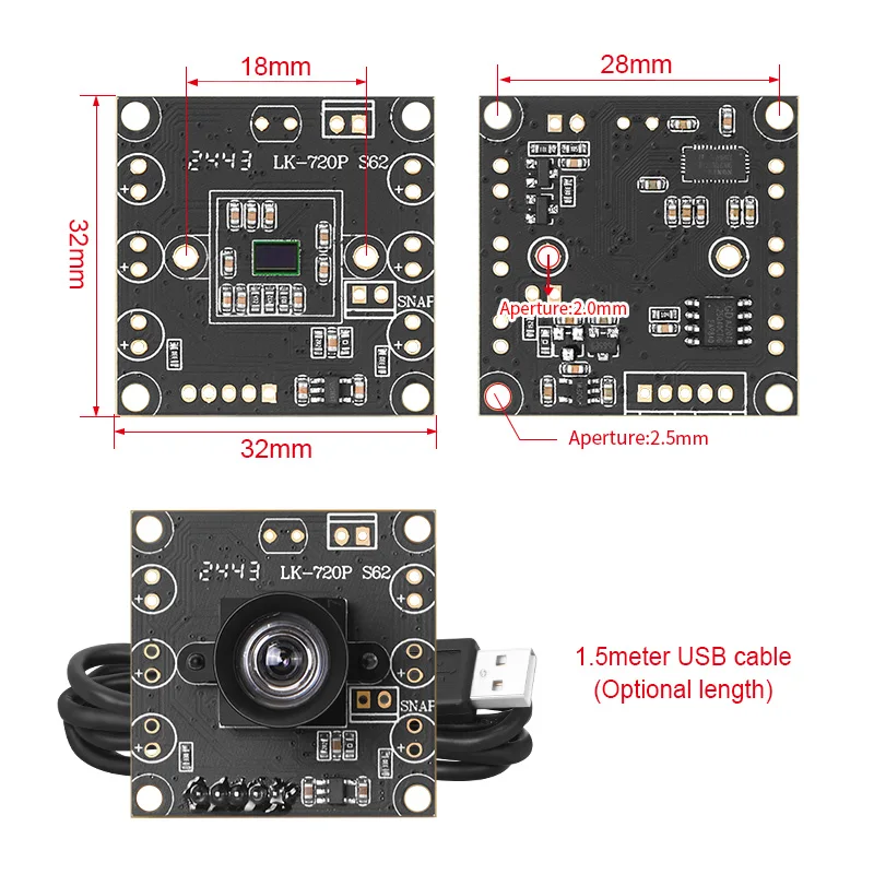 PS5268 Módulo de Câmera USB 1080P Baixa Luminosidade 0,003Lux WDR 86dB Sensor CMOS 2MP Mini SDK Compatível com Raspberry, Windows, Linux